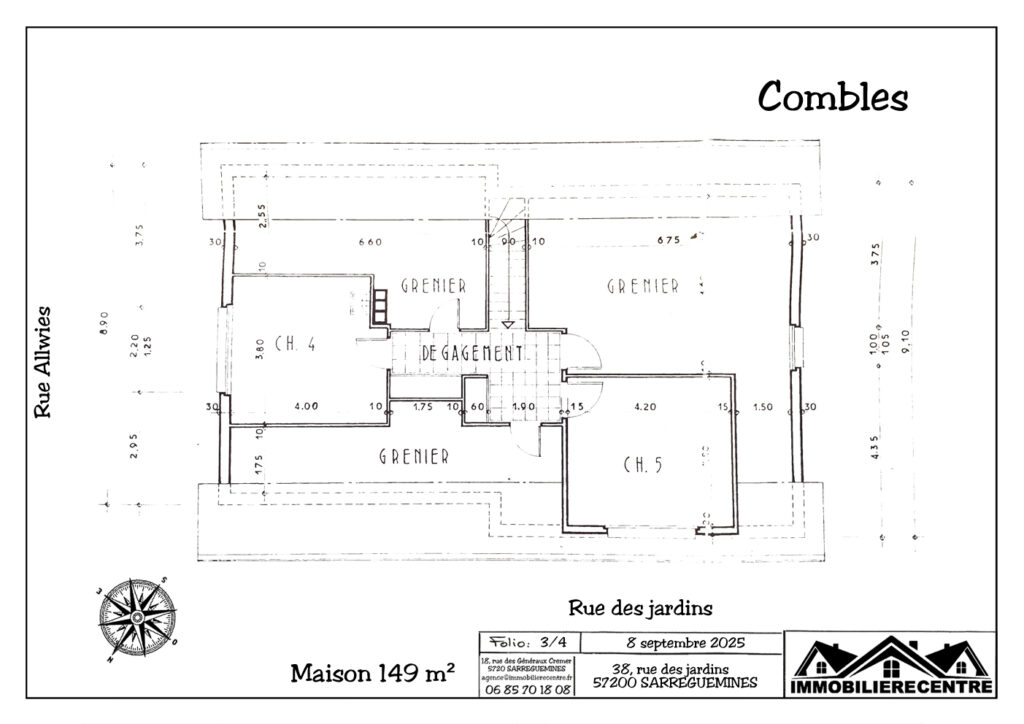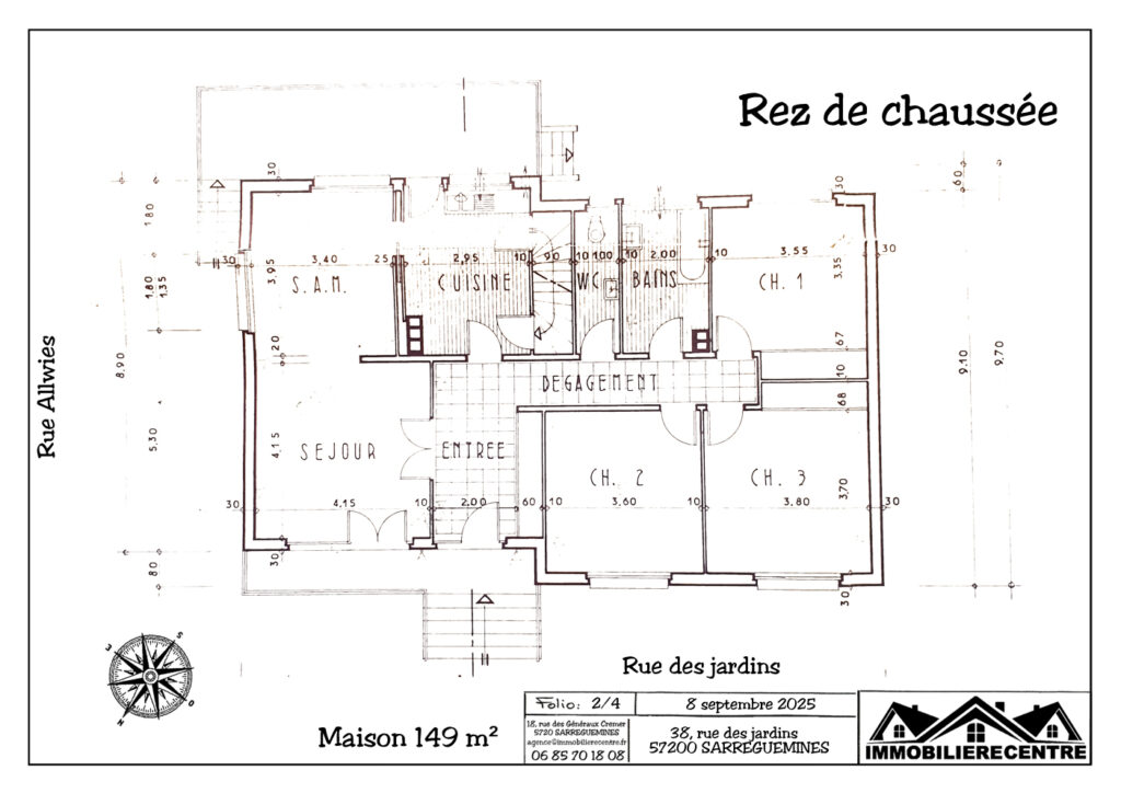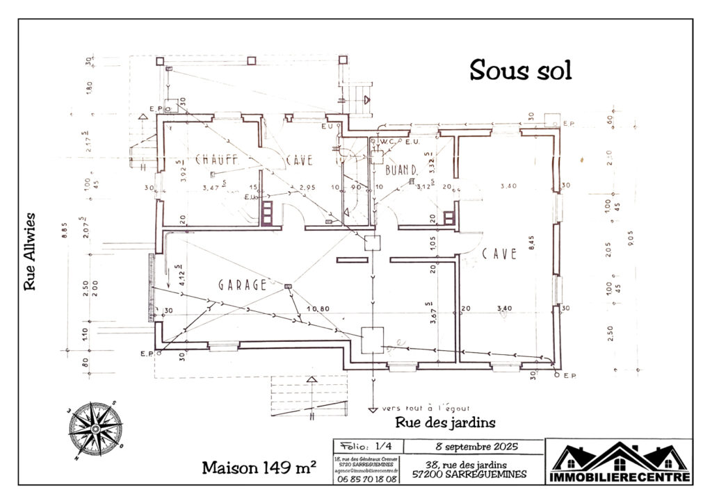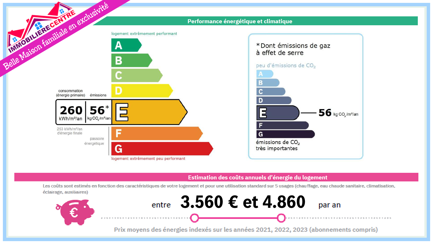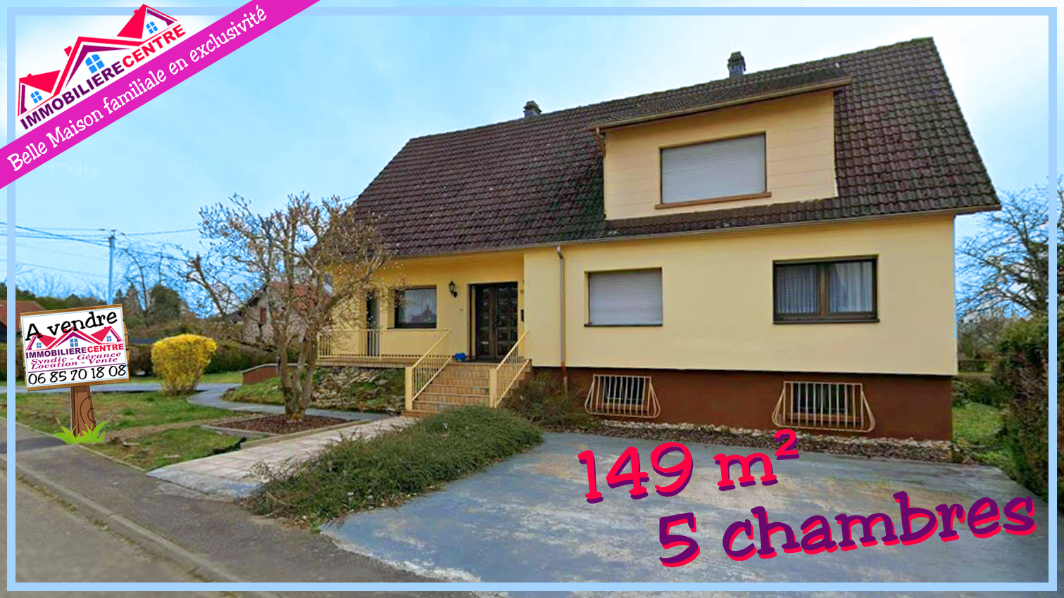 A Sarreguemines sur un terrain bien plat de 943m², votre agence Immobilierecentre vous présente en exclusivité, une belle maison familiale de 149m² habitable proposant cinq chambres. Sous-sol avec garage, buanderie, atelier, pièces de rangement et chaufferie au gaz dotée d’une machine De Dietrich de 2020 avec production d’eau chaude. Le montant estimé des dépenses annuelles d’énergie pour un usage standard est compris entre 3.560 et 4.860 € par an, prix moyen des énergies indexés sur l’année 2021 abonnements compris.Ce Diagnostic de performance énergétique classe E est facilement améliorable par une simple isolation de la toiture. Les murs extérieurs sont isolés et les fenêtre présentent du double vitrage.