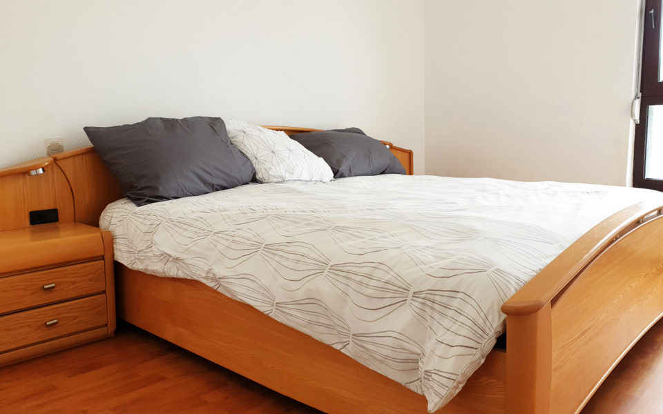 L’entrée est spacieuse et dessert le séjour et la cuisine. En dépendance de la cuisine, une buanderie. Il y a un passe-plat qui fait bar entre la cuisine et le séjour. Deux chambres dotées de literie haut de gamme, du rangement dans le couloir, un grand cagibi à côté des chambres. Wc à part, et salle de bain avec baignoire et douche.
