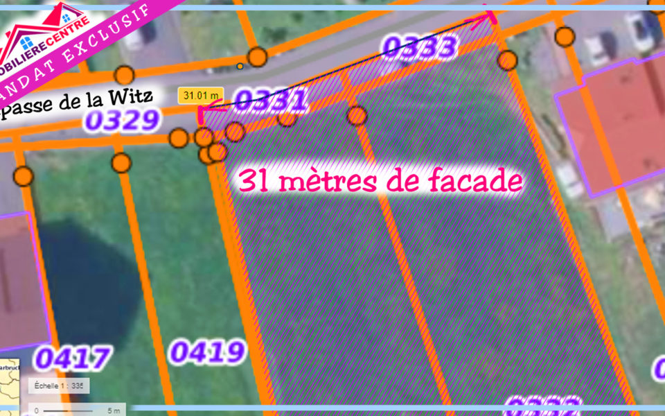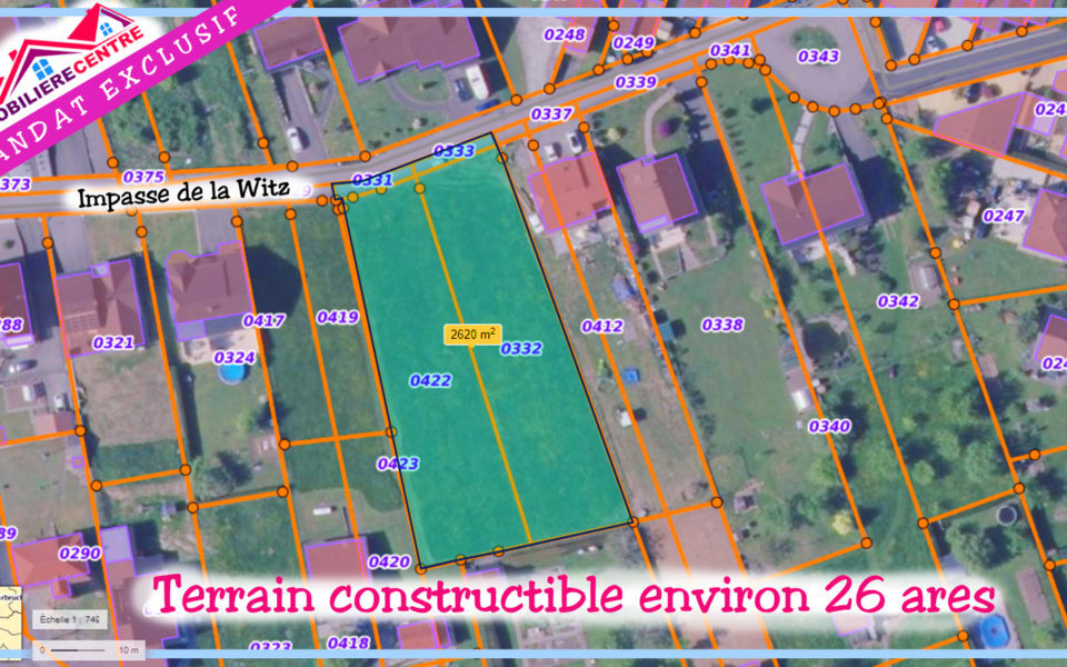 L’agence immobilièrecentre vous propose un beau terrain d’exception, d’environ 26 ares, viabilisé, avec 30mètre de façade dans un quartier résidentiel chic de Puttelange aux lacs.
